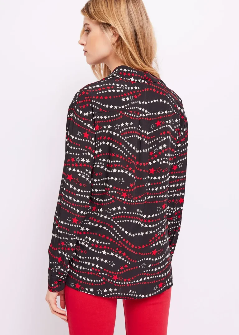 Blusa en tejido de viscosa con lazada en el cuello, puños con cierre de botón.