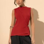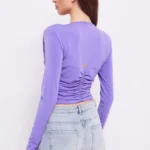 Top en tejido punto en microfibra con cuello cisne y detalle en bajo con goma.