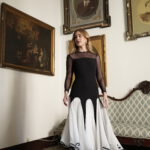 Vestido en tejido crepe con elastano en parte superior y parte inferior en tul.