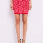 Falda en tejido de punto con pelito, cinturilla elástica y detalle joya delantero.