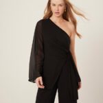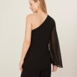 Blusa en tejido de gasa con corte asimétrico. Forro interior.