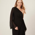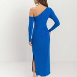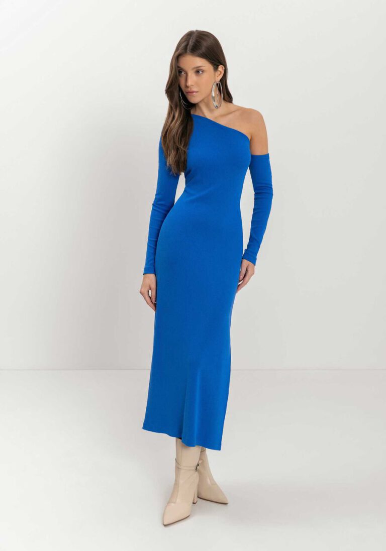 Vestido en tejido punto en canalé con simetría en hombro y abertura lateral.