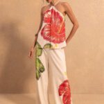 Blusa en tejido algodón rayón Bali con tirantes halter ajustables. Tejido sin elastano.