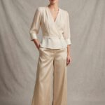 Conjunto en tejido crepe con elastano con simetría en bajo y pantalón Palazzo.