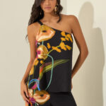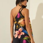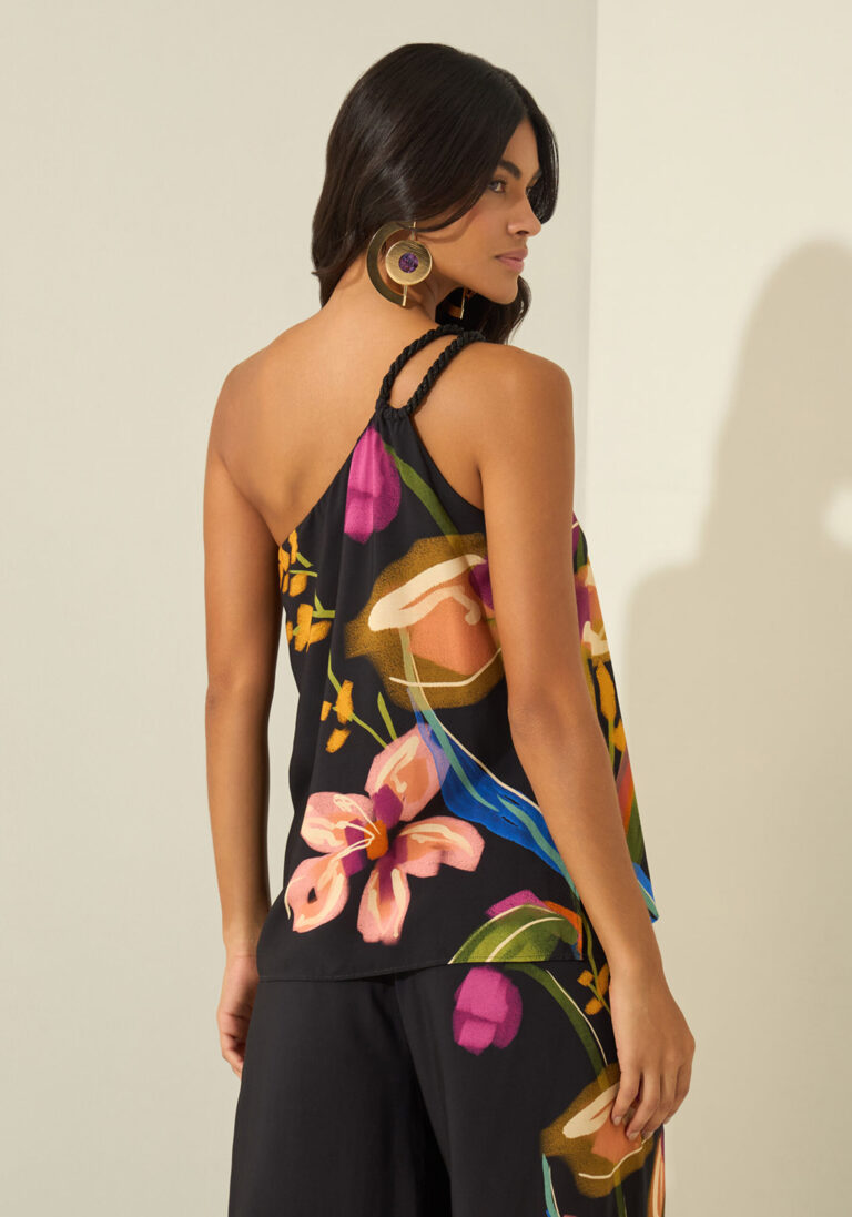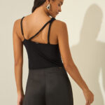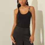 Top en tejido satinado con detalle en cadena en los tirantes.
