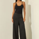 Palazzo en tejido satinado con cinturilla. Cierre con cremallera invisible lateral.