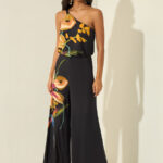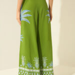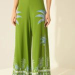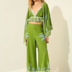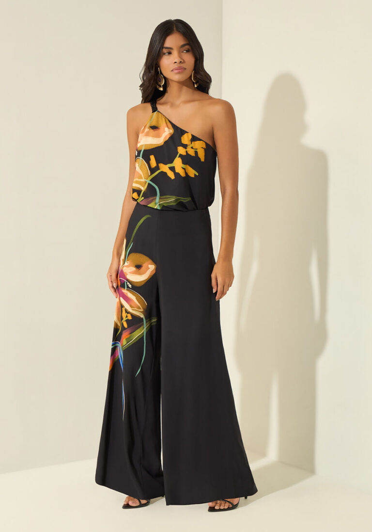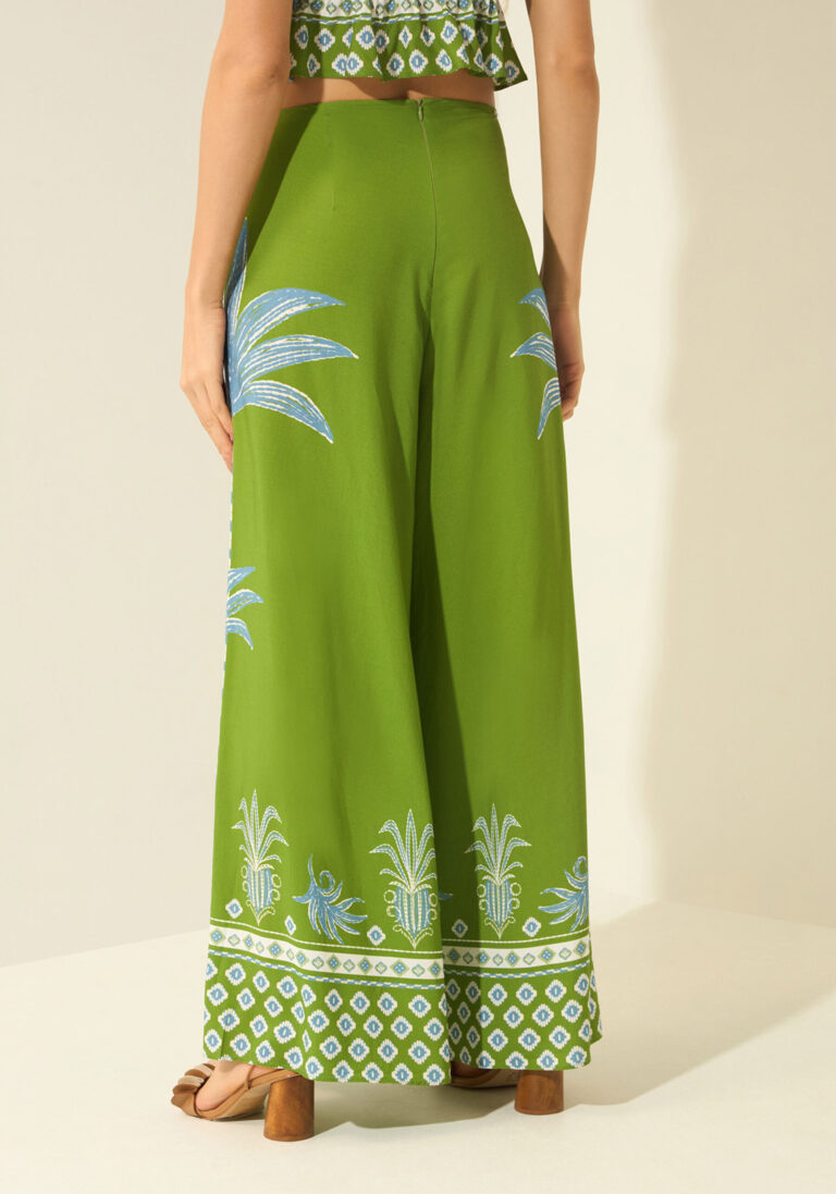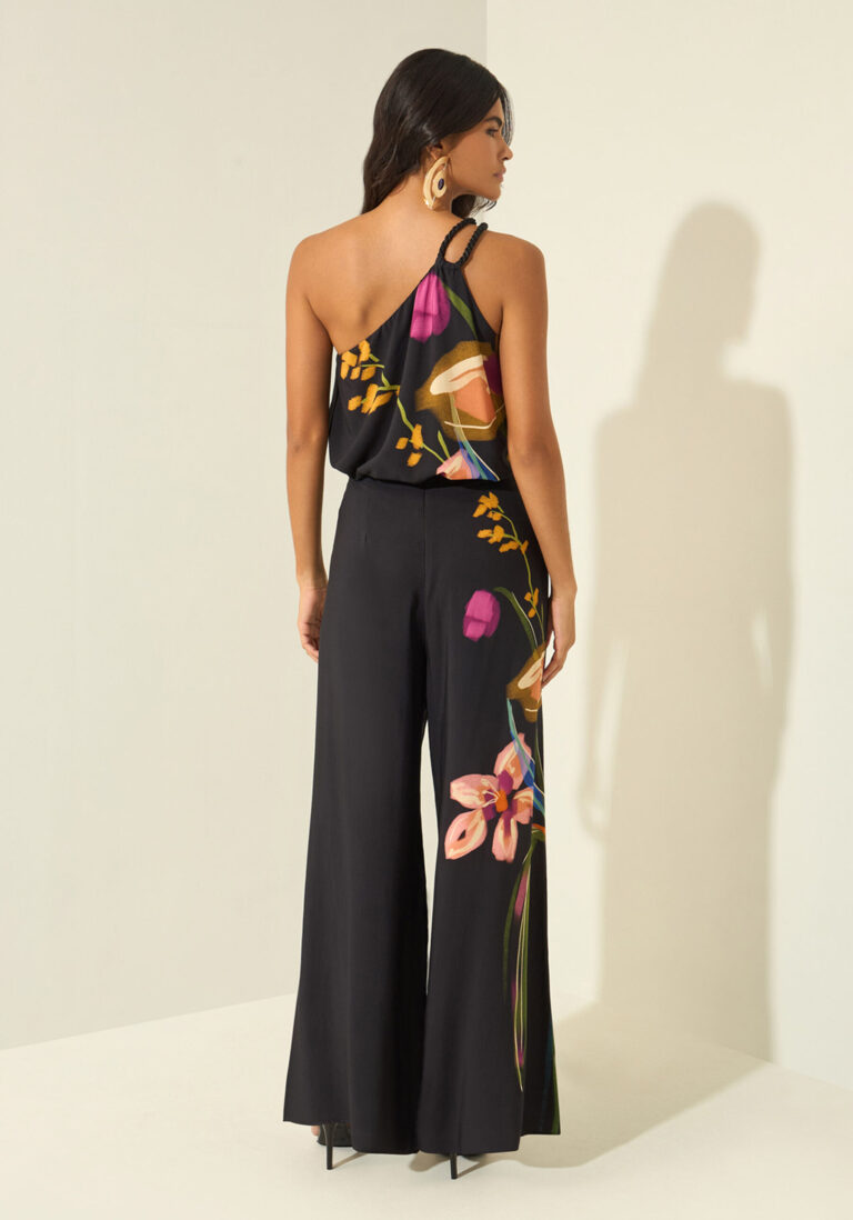 Conjunto en tejido crepe con elastano compuesto por blusón en capa trasera y pantalón Palazzo tiro alto.
