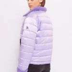 Bomber plumífero con bolsillos laterales y capucha. Cierre con cremallera vista del mismo color.