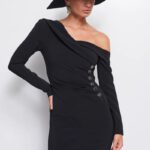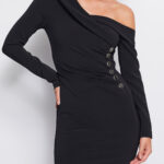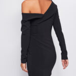 Vestido en tejido punto en canalé con simetría en bajo y corte cruzado frontal decorativo. Abertura lateral.