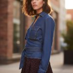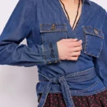 Camisa en tejido algodón jeans con elastano y corte cruzado con cintas para ajustar.