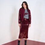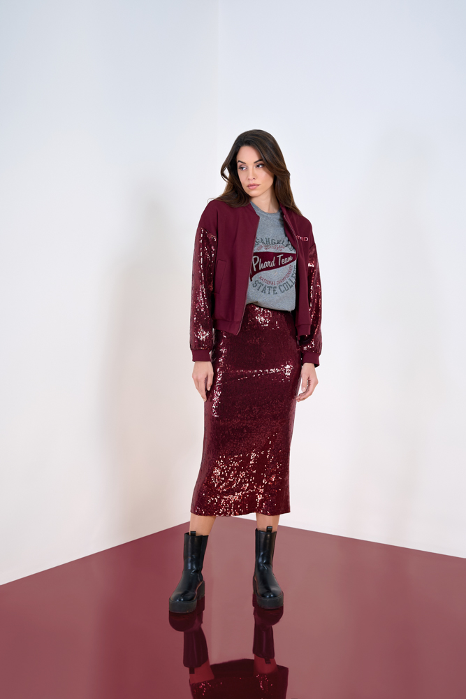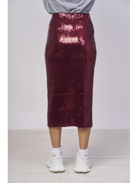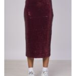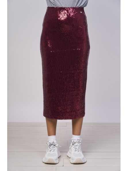 Falda en tejido de paillettes y corte lápiz. Cinturilla elástica.