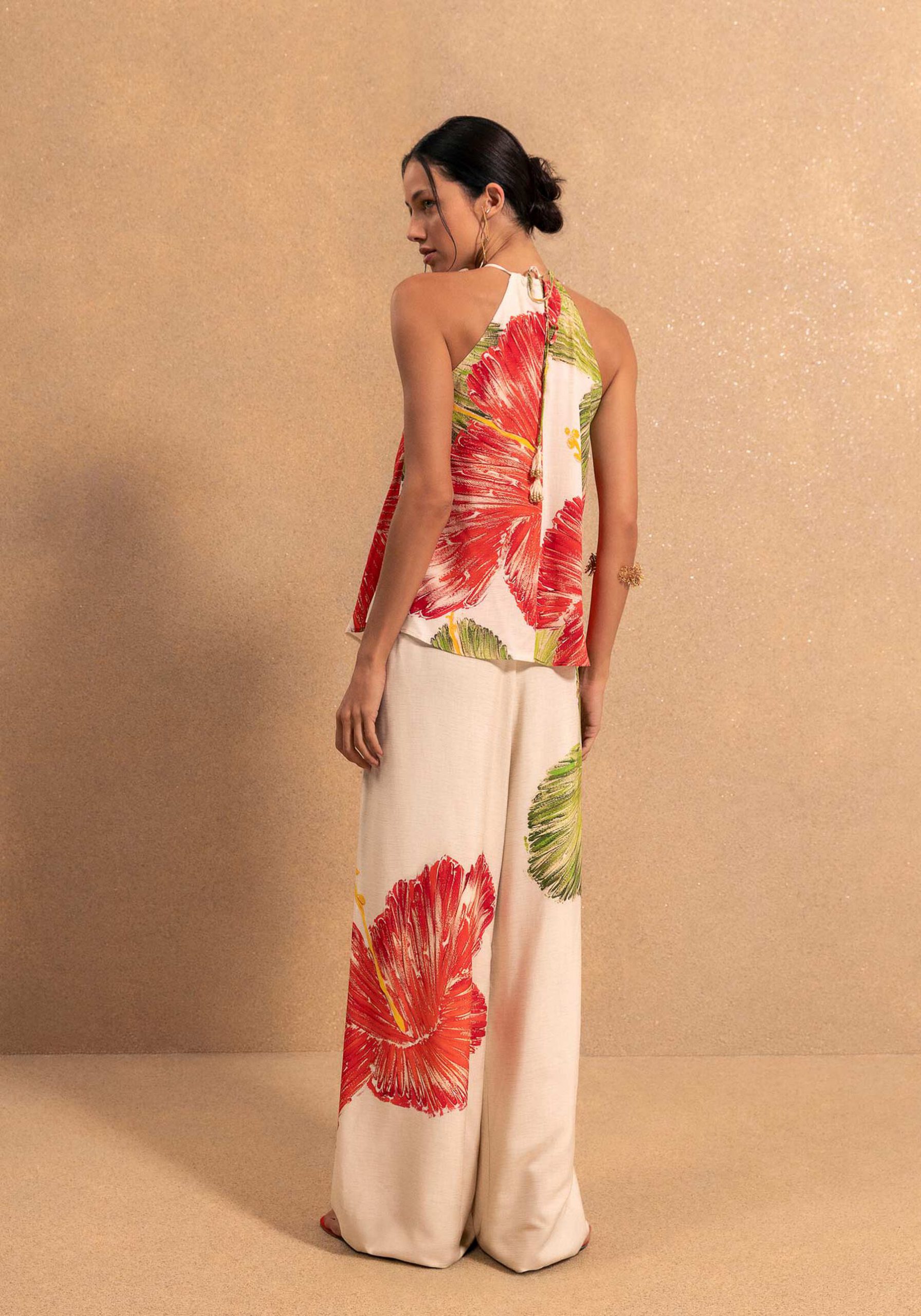 Blusa en tejido algodón rayón Bali con tirantes halter ajustables. Tejido sin elastano.