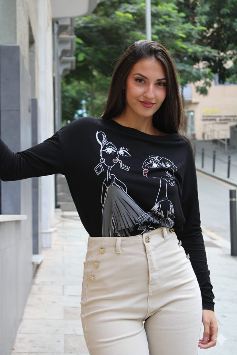 Camiseta en tejido de viscosa con elastano, escote abierto y aberturas en laterales.