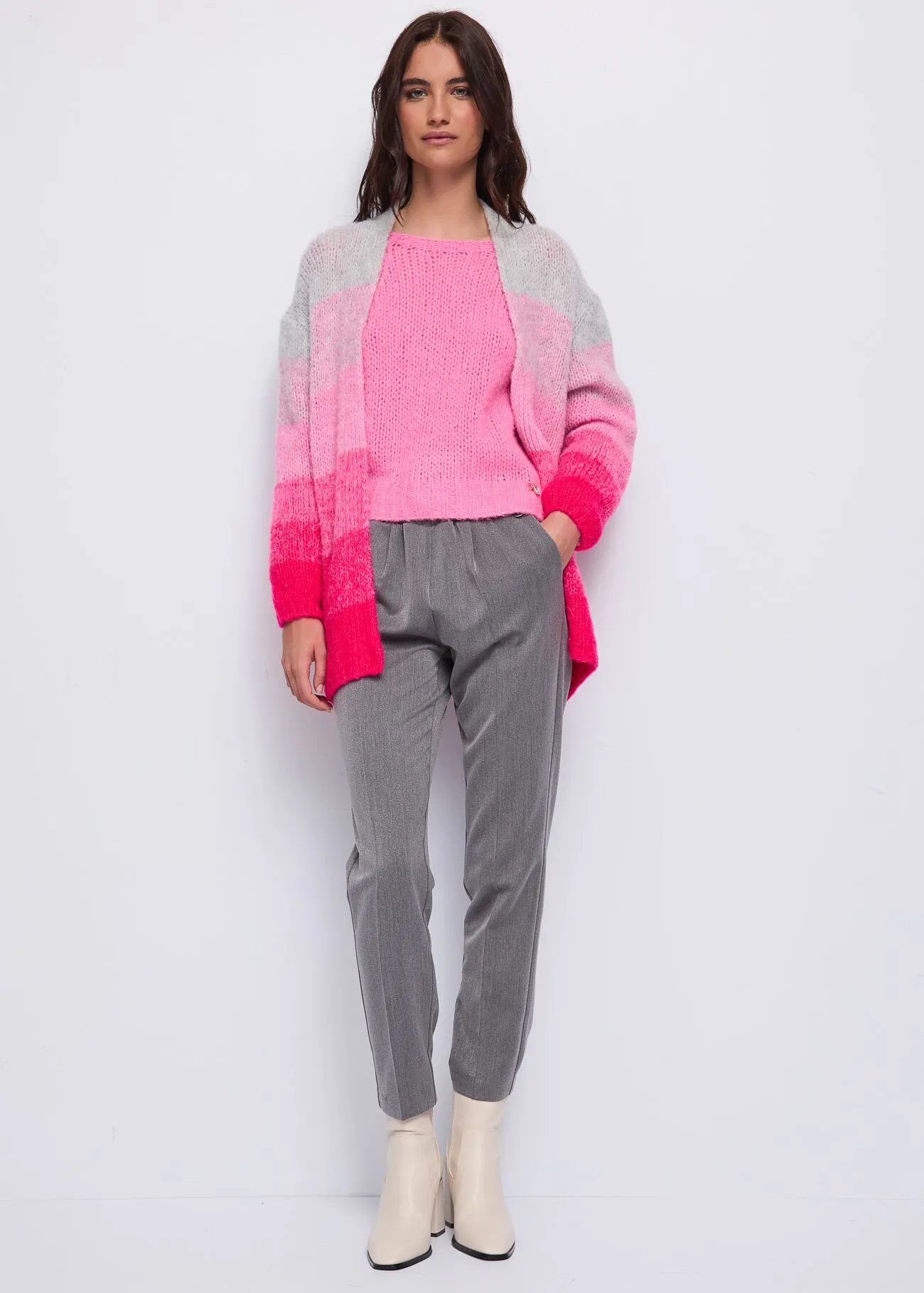 Cardigán en tejido punto mezcla lana con colores variados.