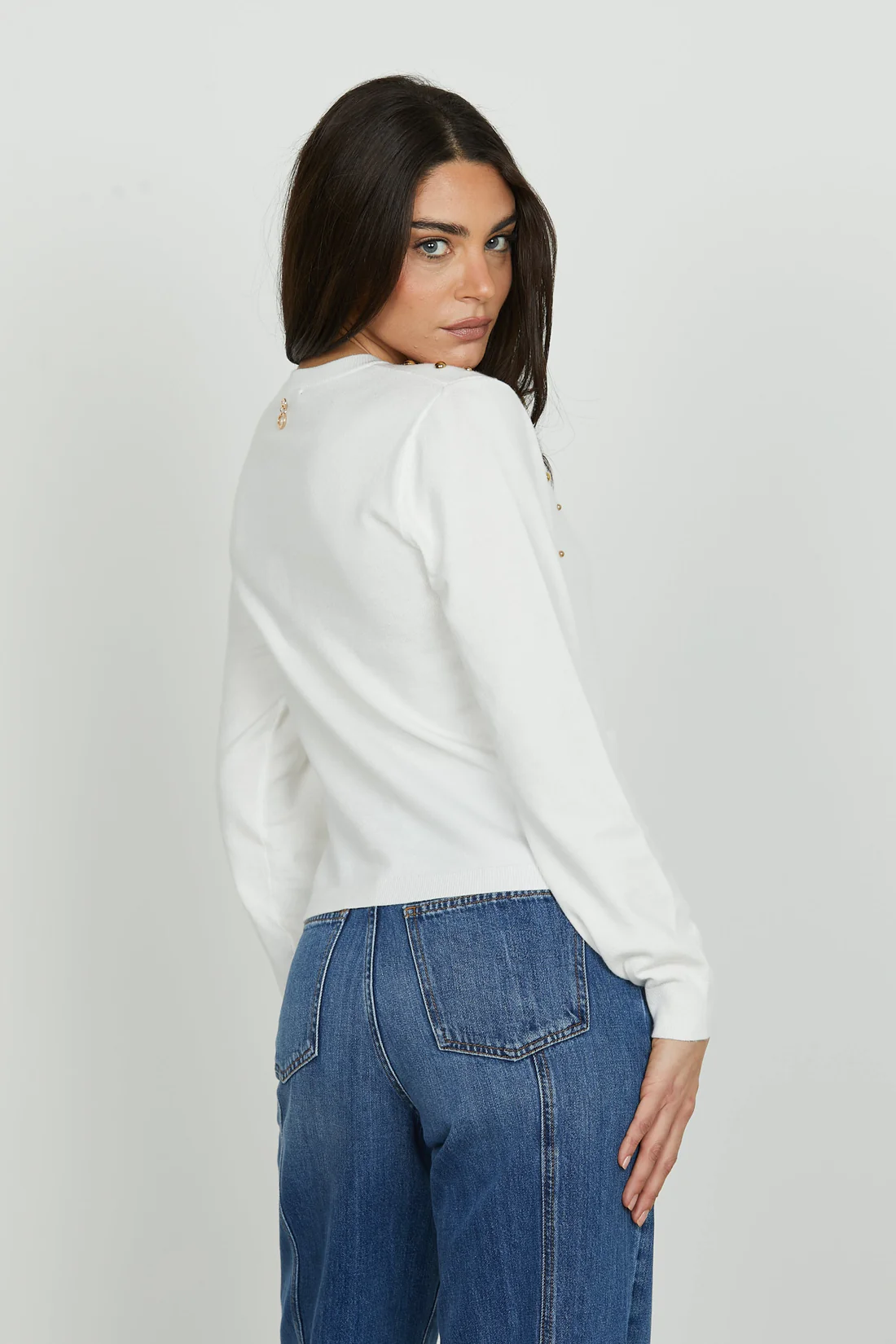 Cardigán en tejido punto mezcla lana con tachas decorativas frontales.