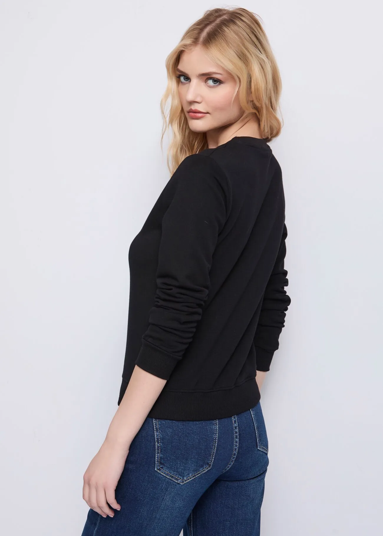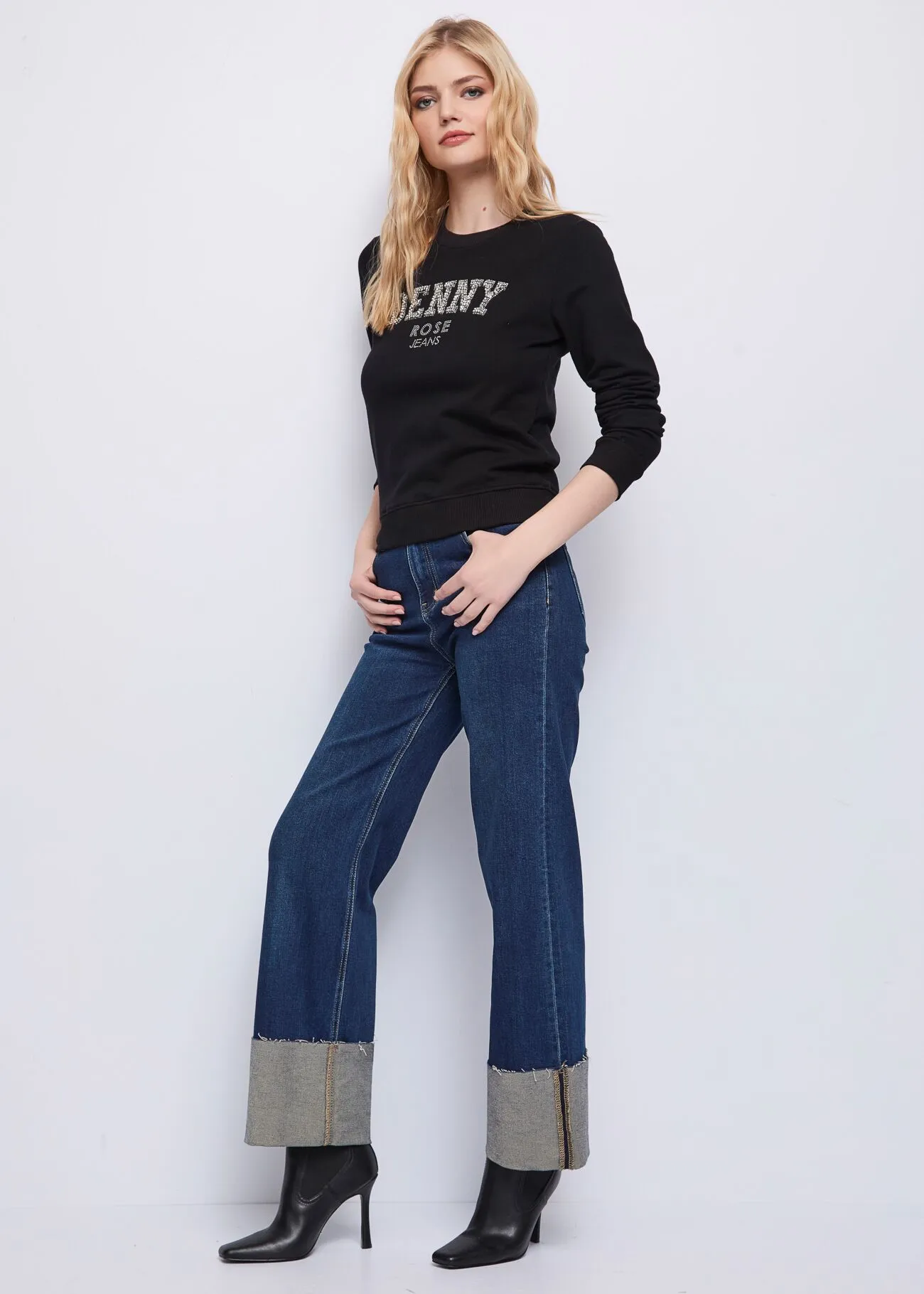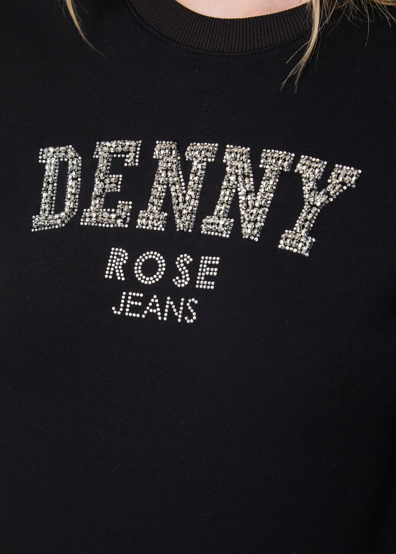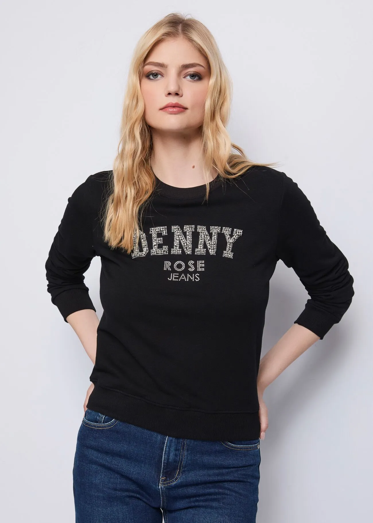 Felpa en tejido algodón con elastano con detalles frontales de pedrería y bolitas.