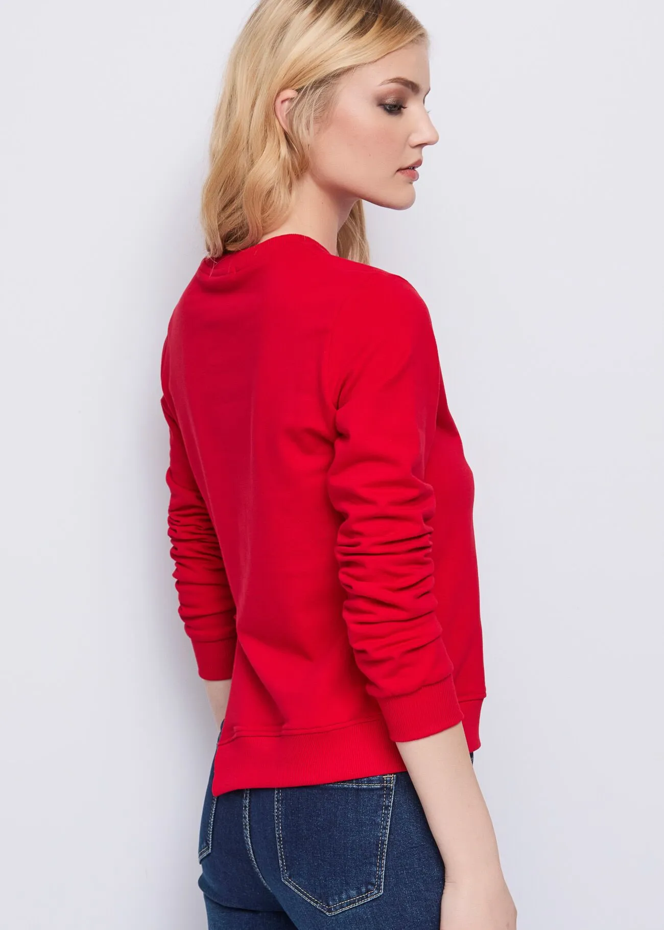 Felpa en tejido algodón con cristales de imitación en frontal.