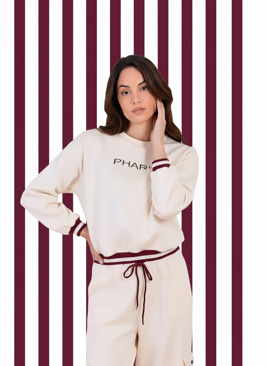 Felpa en tejido de viscosa y elastano con logo de la firma en el pecho. Patente en bajo y puños a contraste con líneas.