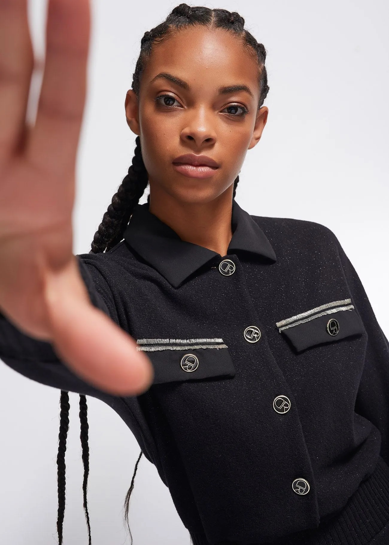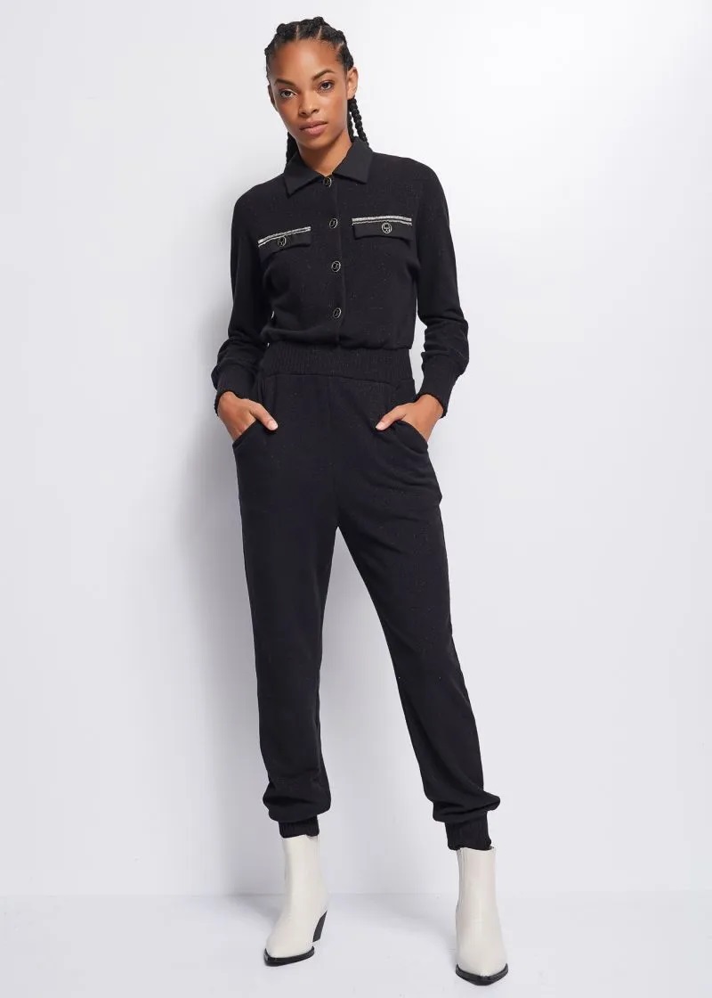Mono en tejido punto mezcla lana con patentes en cintura y puños. Estilo oversize.