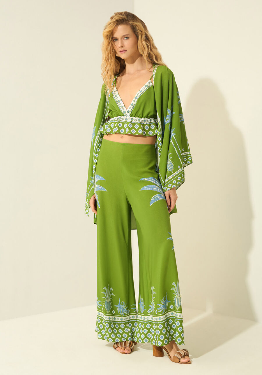 Pantalón en tejido de algodón rayón Bali con pata ancha. Tejido sin elastano.