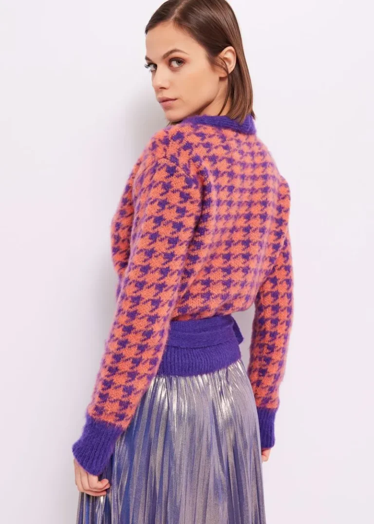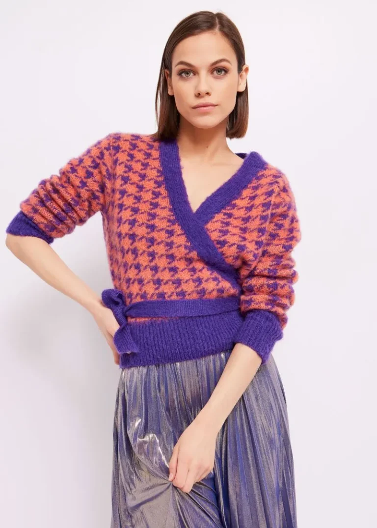 Jersey en tejido punto mezcla lana con print metalizado en colores.