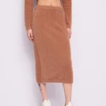 Falda en tejido de punto con pelito, cinturilla elástica y detalle joya delantero.