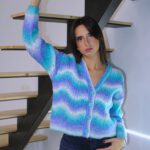 Cardigán en tejido punto mezcla lana con colores variados.
