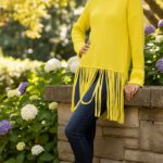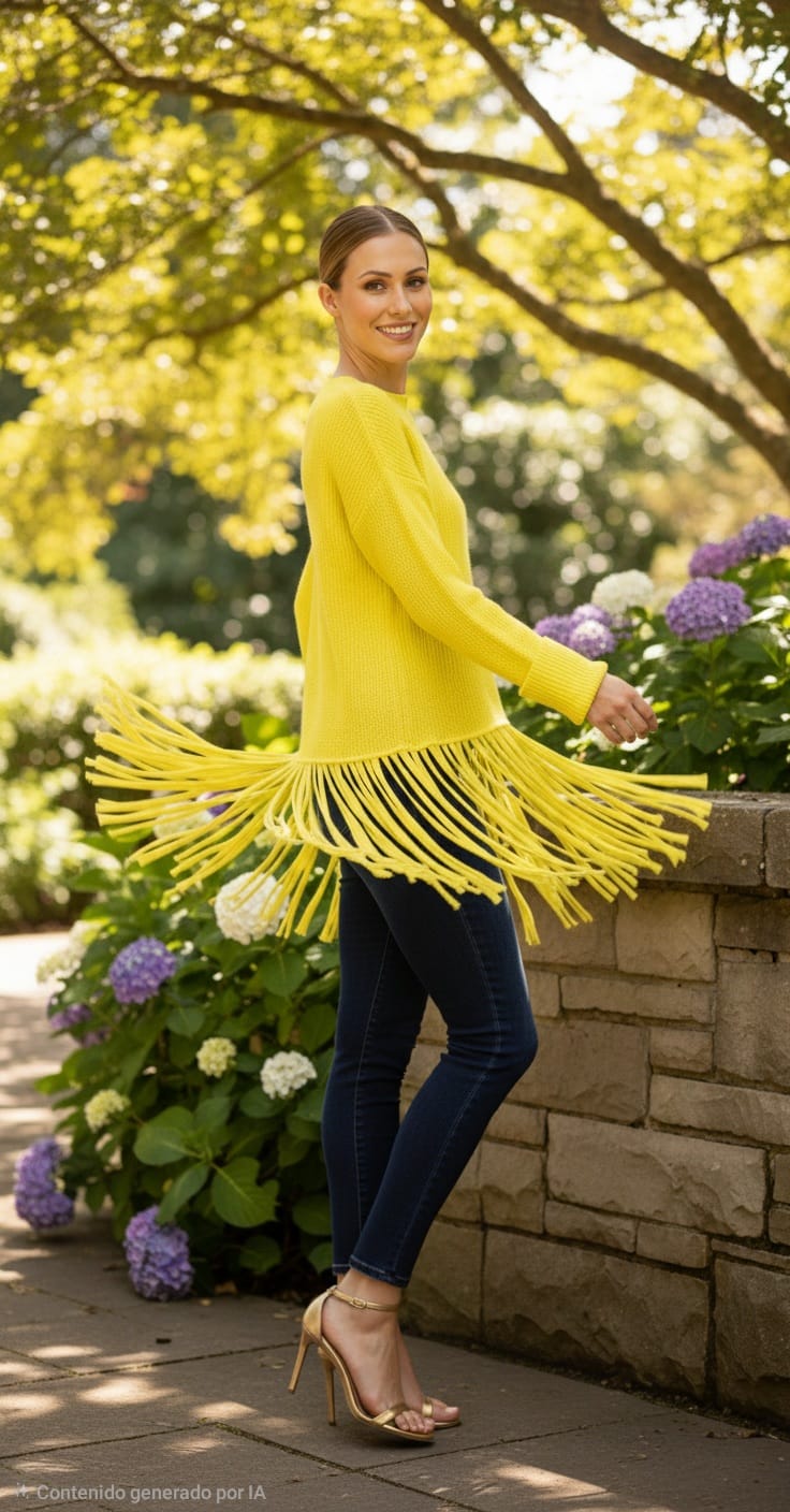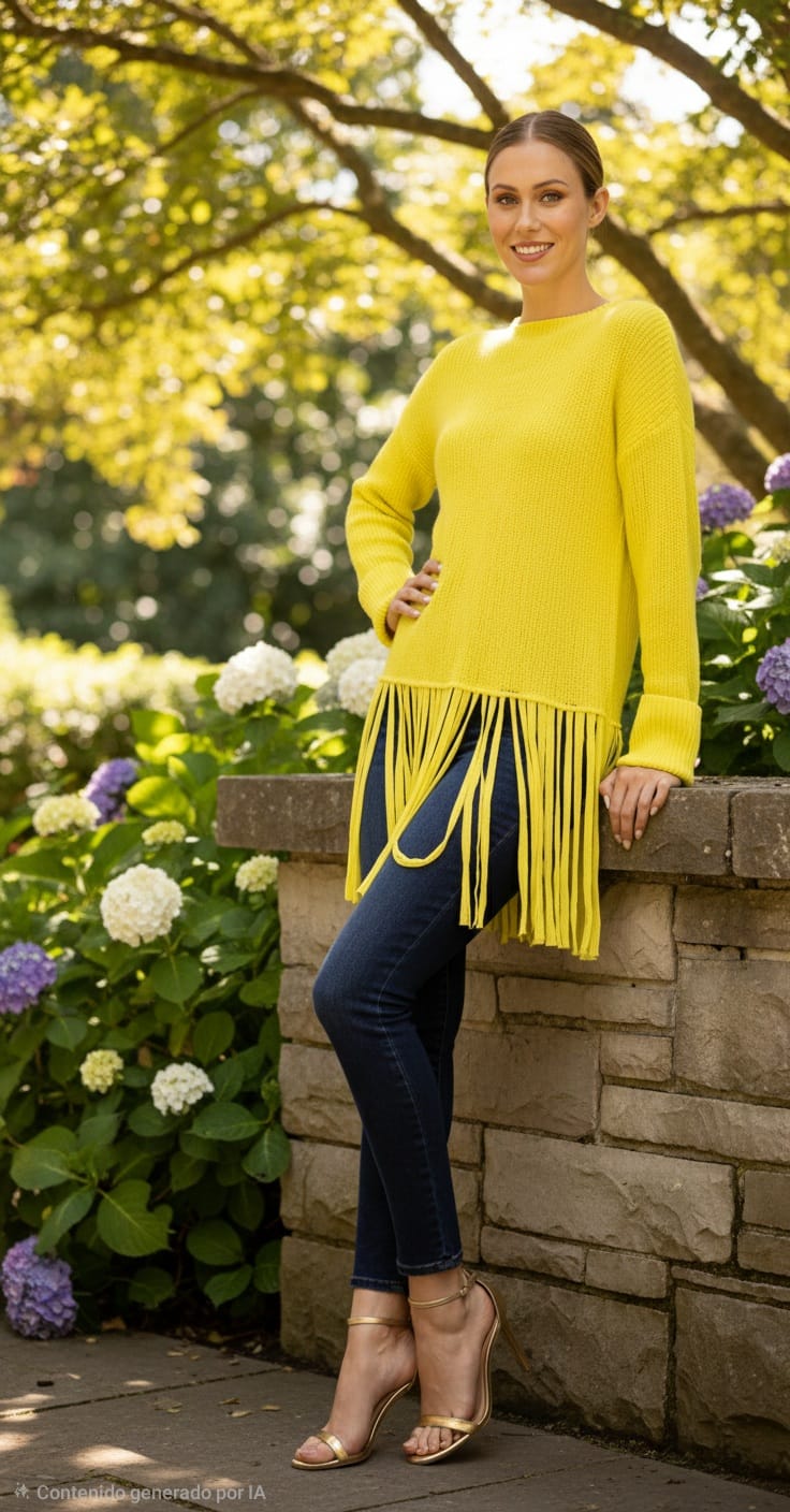Jersey de punto con flecos del mismo tejido en el bajo.