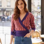 Jersey en tejido de punto con corte cruzado y cierre con lazada.