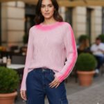 Jersey en tejido de punto con cuello cisne y franja a contraste en mangas.