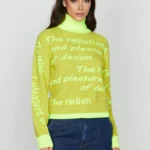 Jersey en tejido punto mezcla lana con cuello vuelto y estampación en letras.