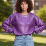 Jersey en tejido hilo perforado con mangas acampanadas.