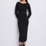 Vestido en tejido punto en seda con espalda al aire y cadena decorativa con lazada.