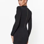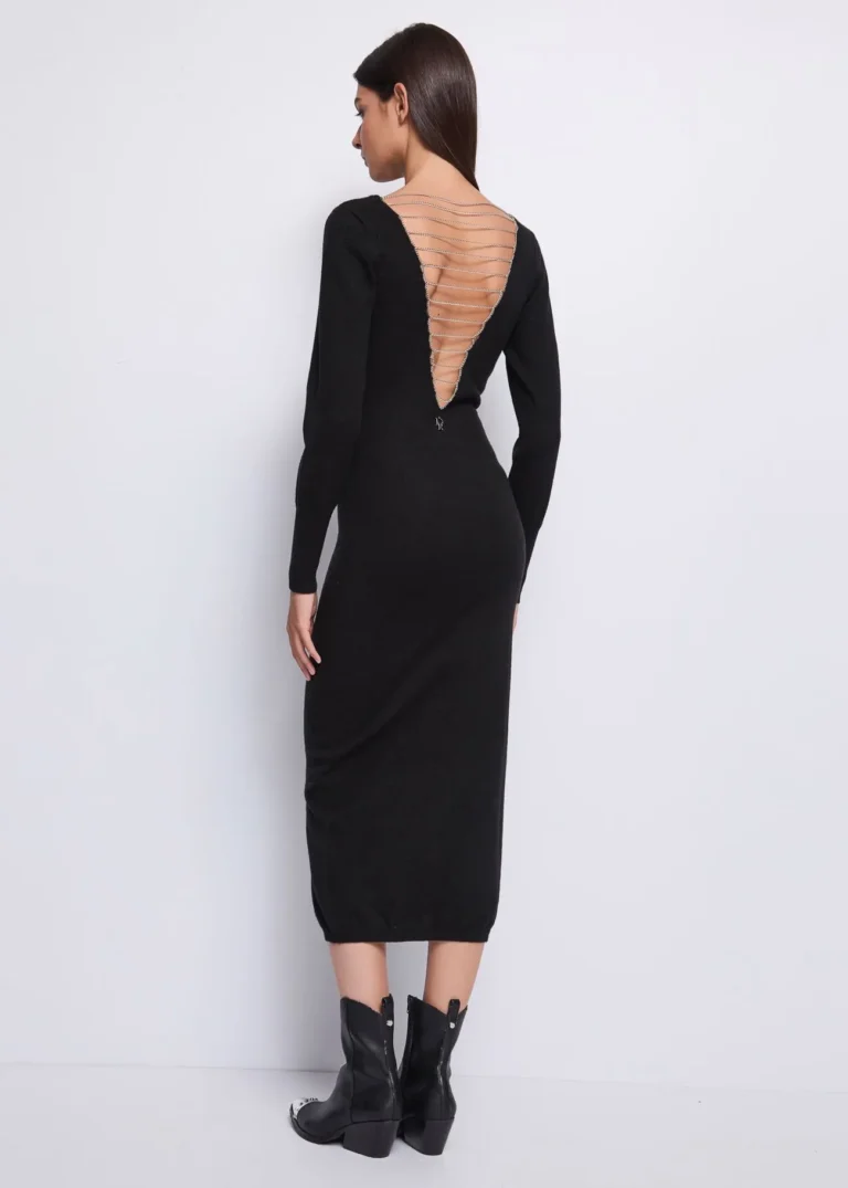 Vestido en tejido punto mezcla lana con escote trasero con cadenas decorativas.
