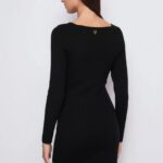 Vestido en tejido punto mezcla lana con logo a contraste, cuello cisne y patente en bajo.