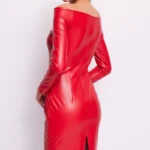 Vestido en tejido eco piel con elastano con abertura frontal.
