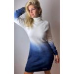 Vestido en tejido punto mezcla lana con cuello vuelto y pelito en tejido.