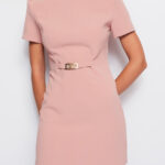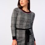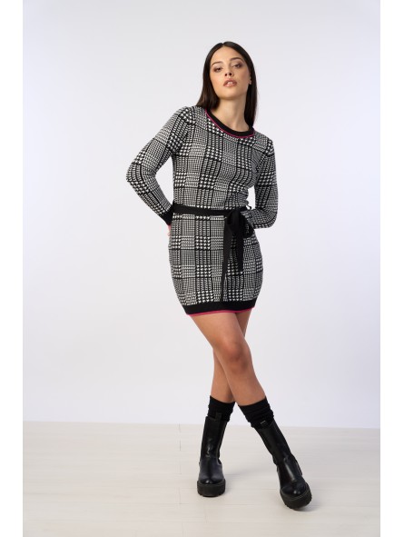Vestido en tejido punto mezcla lana con detalles a contraste y cinturón decorativo incluido.