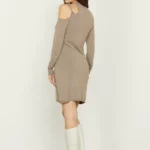 Vestido en tejido punto en canalé con simetría en hombro y abertura lateral.
